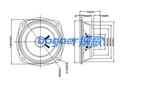 内磁扬声器喇叭 3X3寸-79X79mm